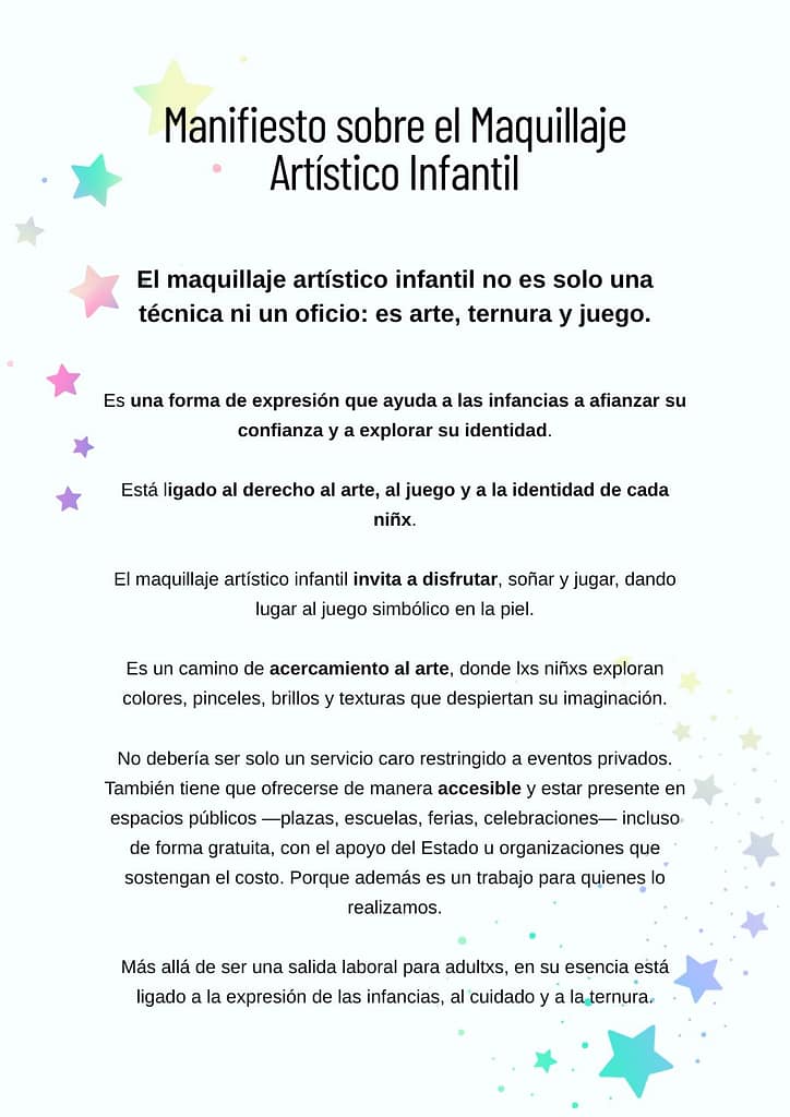 ✨ Ofrezco este manifiesto para continuar pensando -junto a otrxs- el maquillaje artístico, porque considero que esta práctica es una oportunidad de pensar la infancia, el derecho al arte y la potencia transformadora del juego.