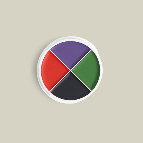 Cuarteto con los colores secundarios fundamentales (Naranja, Verde y Violeta) más un tono Negro esencial para dar profundidad. Ideal para quienes buscan colores vibrantes listos para usar y la posibilidad de oscurecerlos para crear sombras. Tip: Mezclá una mínima pizca de negro con los secundarios para lograr matices más profundos y dramáticos en tus caracterizaciones.