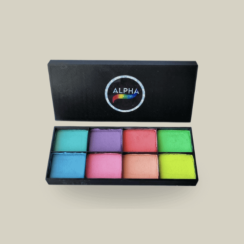 Los boxes de maquillaje Alpha vienen en las siguientes variantes: Principiante, Neón, Pastel, Halloween.