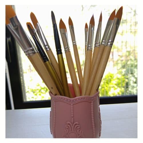 Pinceles de cerdas sintéticas: punta lengua de gato o avellanado.